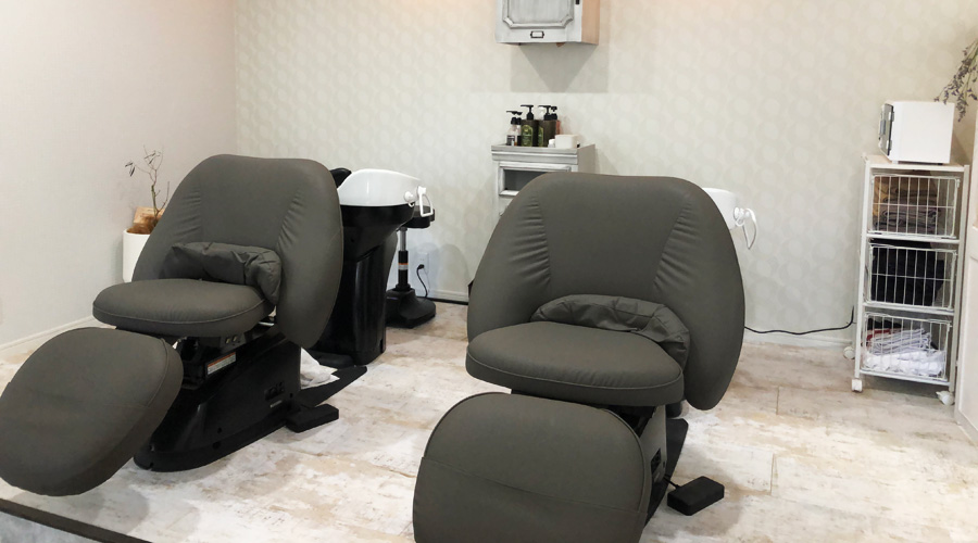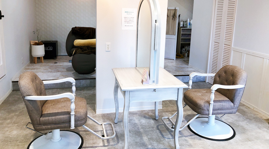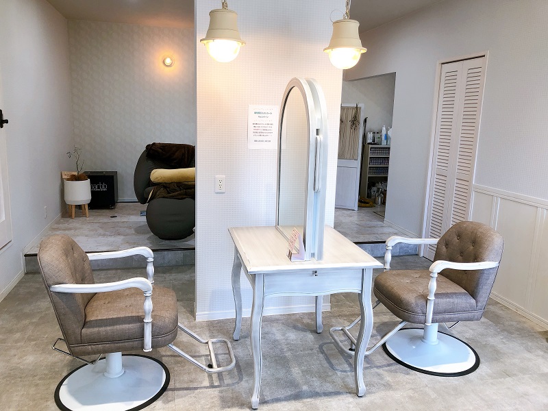 スタイリスト2名、セットスペース2面の、セミプライベートサロン。お友達と一緒のご利用や、初対面でも鏡ごしに会話を楽しむお客さまもいらっしゃいます。